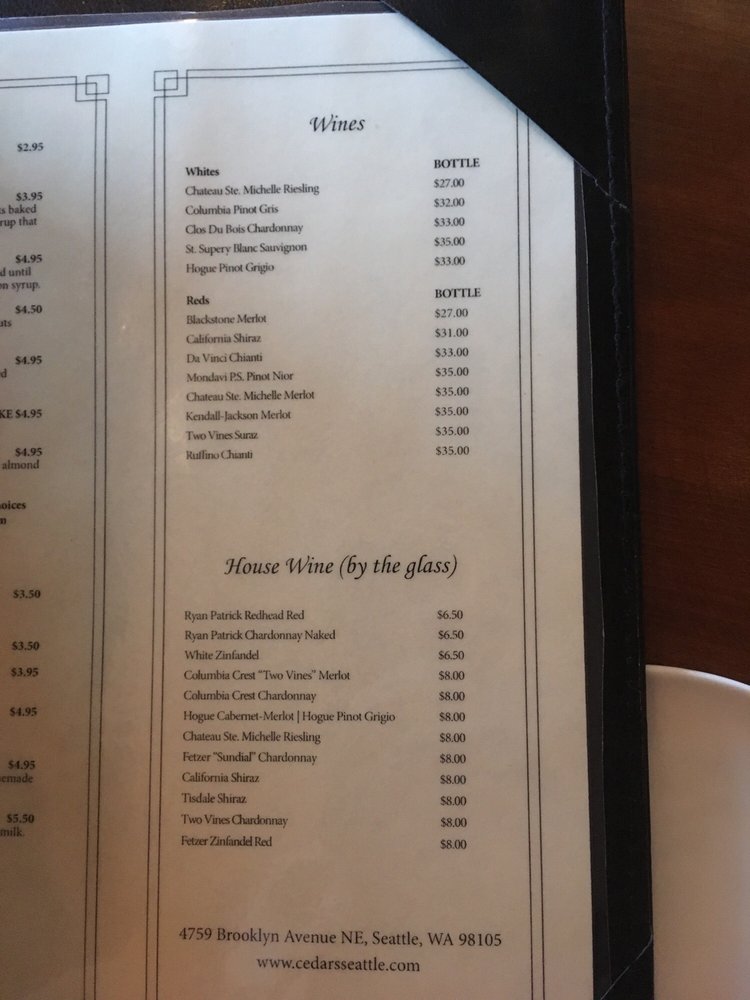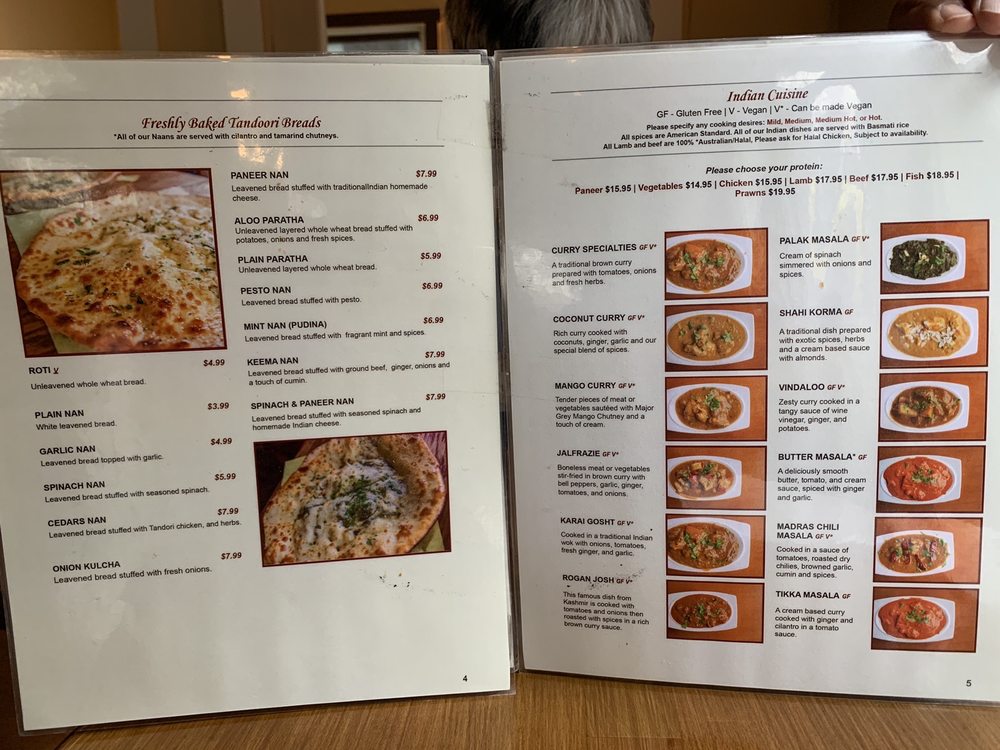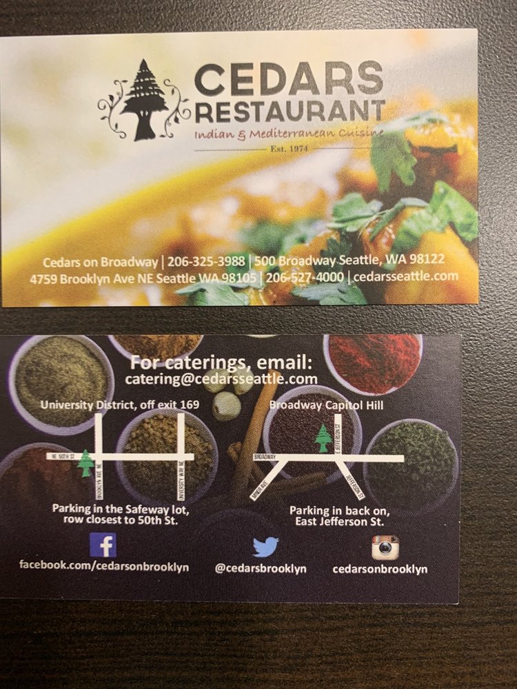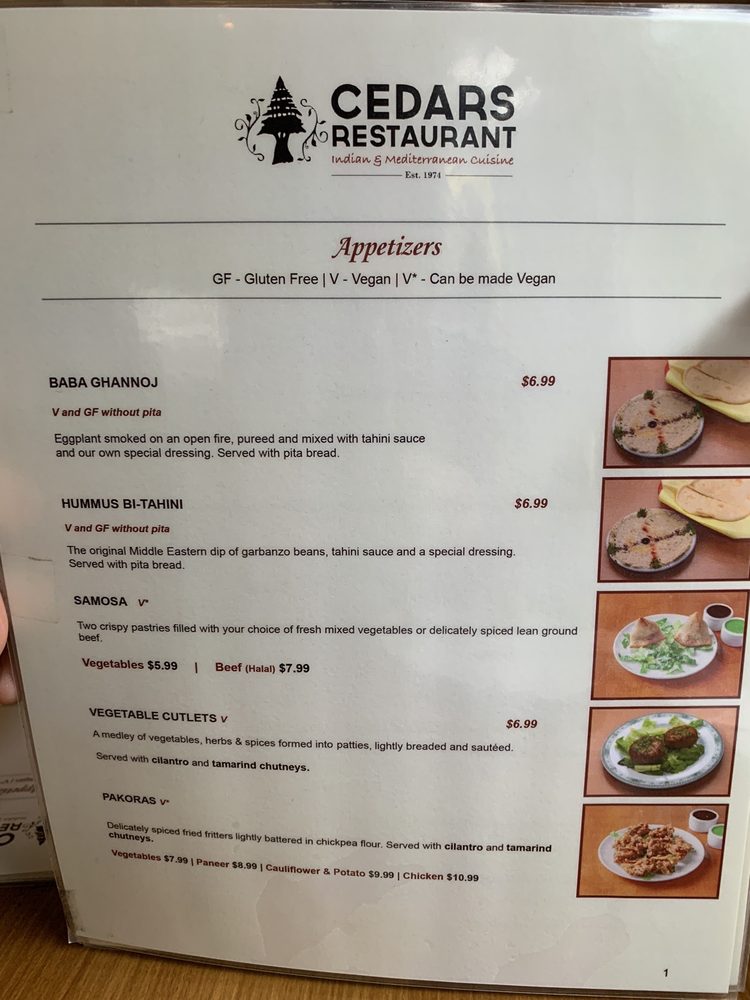 Introducing the menu at Cedars Restaurant, located in Seattle, WA, a casual and inviting spot that offers a variety of vegan and vegetarian options. This restaurant is known for its delicious Indian cuisine, with must-try dishes like coconut chicken curry, garlic naan, butter chicken, and veg kofta. Customers rave about the flavorful butter chicken, soft and tender salmon tandoori, and the unique pesto naan. The menu also includes Mediterranean options, such as samosas and Mediterranean dishes. Enjoy your meal in a cozy atmosphere with friendly service. Don't miss out on the masala chai and dal tadka to complete your dining experience at Cedars Restaurant.